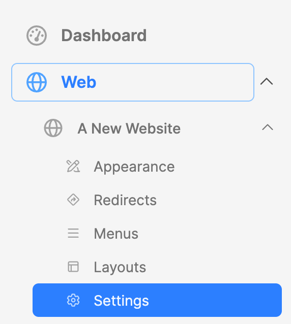 - Click on the name of the website to open the page tree on the right side of the screen.
