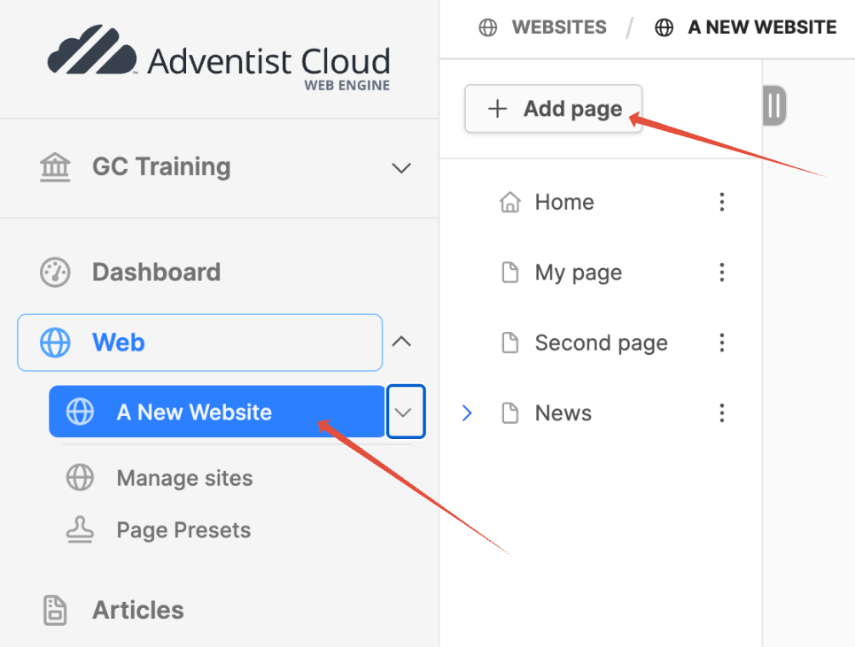 - In the pagetree, drag and drop the page to the top of the Page tree of the website. This helps to remember to remove it before the website goes live.
