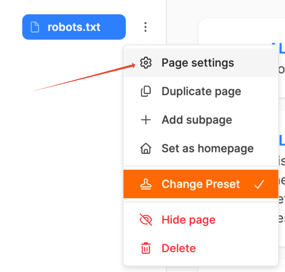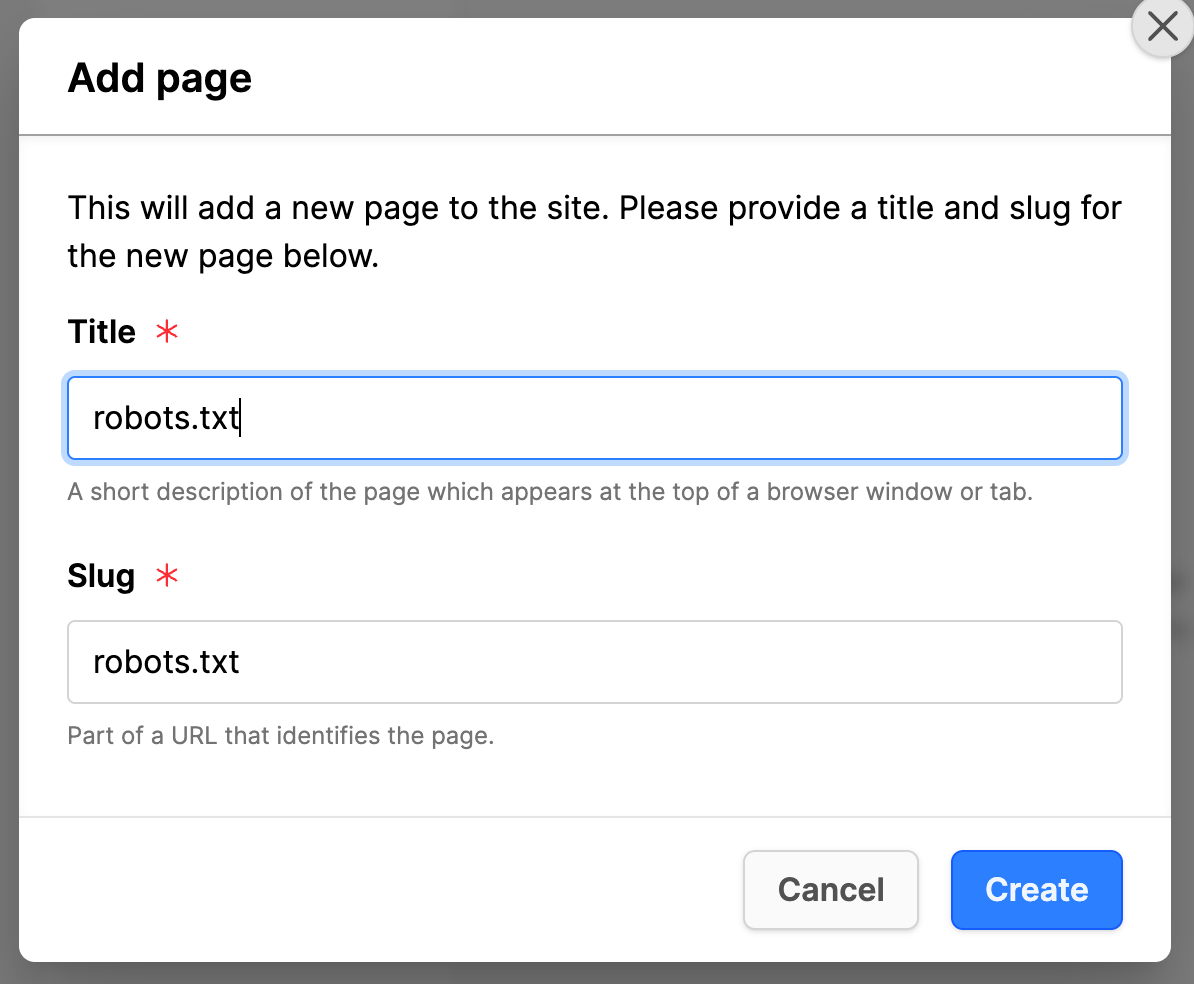 - Slug: robots.txt (the slug needs to be modified to exactly "robots.txt" and not robots-txt!)