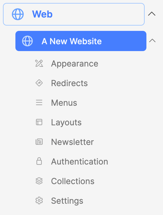 - Click on the website name, to open the editor on the right side of your screen, The page tree will be displayed.