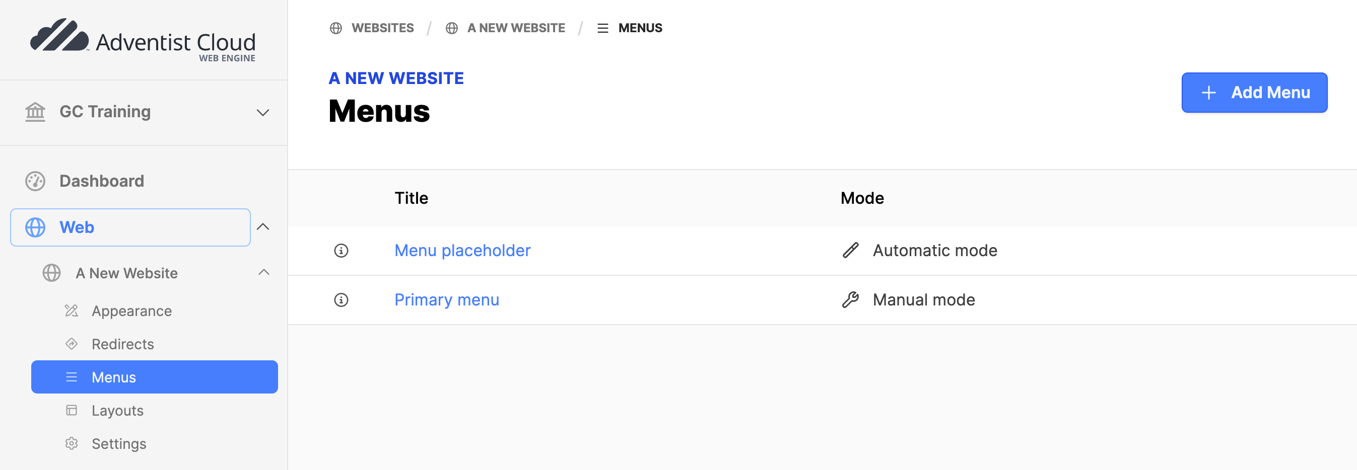 - Click on Menus to open the menu list